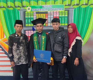 Di balik toga dan samir yang ia kenakan, tersimpan kisah perjuangan panjang seorang anak desa yang gigih menempuh pendidikan tinggi sambil membantu orang tua di rumah.
